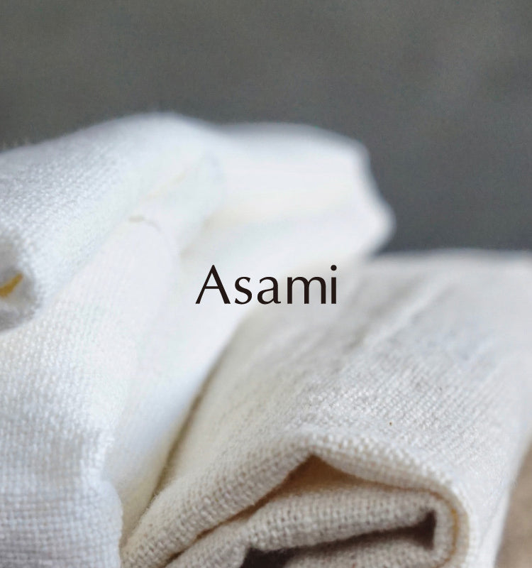 ASAMI(アサミ)は、従来の麻調合繊では表現できなかった、天然の麻のような風合いとナチュラルな表情を併せ持った新素材です。ASAMIの特長は、スパン糸を使用していることです。従来の麻調合繊はフィラメント糸を使用していたため、天然繊維のような風合いや見え方に限界がありました。それを当社オリジナルのスパン糸を開発することで、フィラメント糸特有の硬さや光沢感をなくし、麻の持つ膨らみ感や杢感のある生成色に限りなく近づけています。