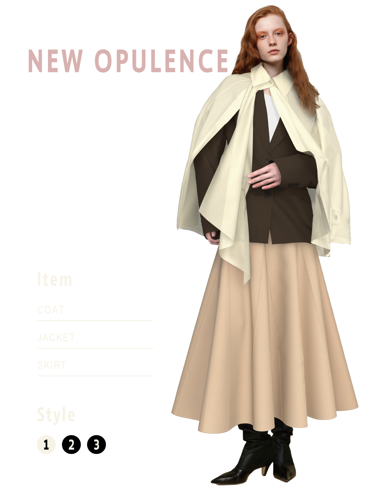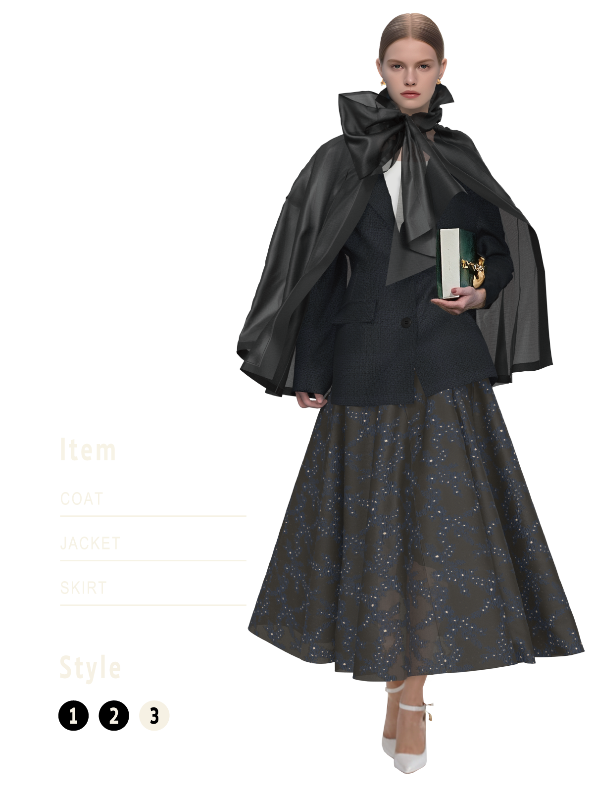 カーヴィーな構築感を演出する、膨らみのあるサテンやダブルクロス。