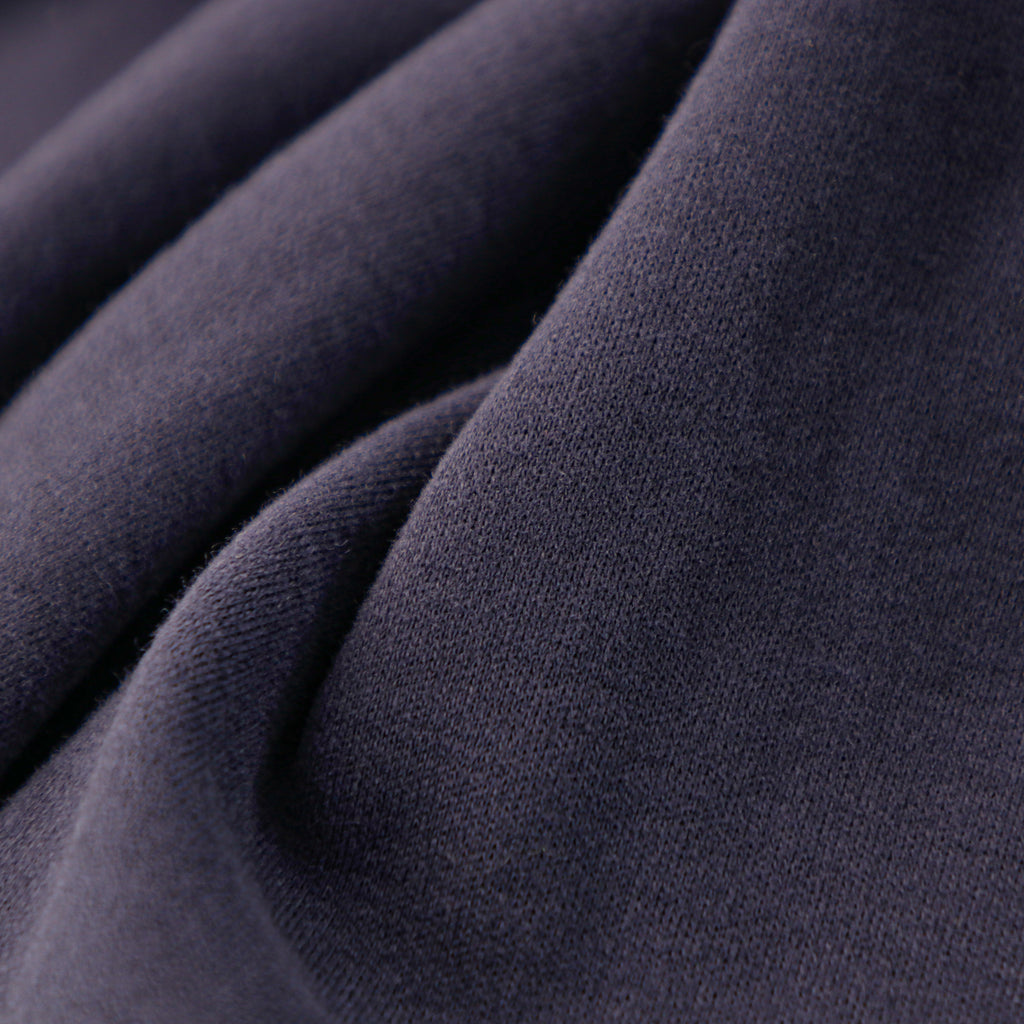ベーシック素材である40/2天竺に表起毛をかけました。 絶妙な起毛感で、フィブリルさせたような表面感が特徴です。 なめらかな風合いで肌触りが良く、心地よい着心地を提供致します。