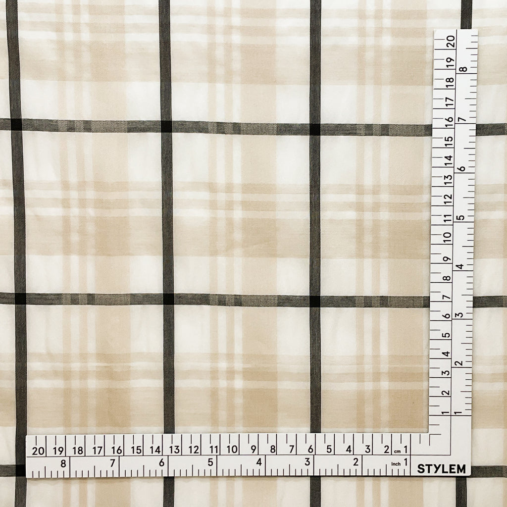 透ける部分と透けない部分のコントラストが楽しめるシズルチェックシリーズ。 こちらは大き目の柄に控えめな配色の使いやすいマドラスチェック柄です。