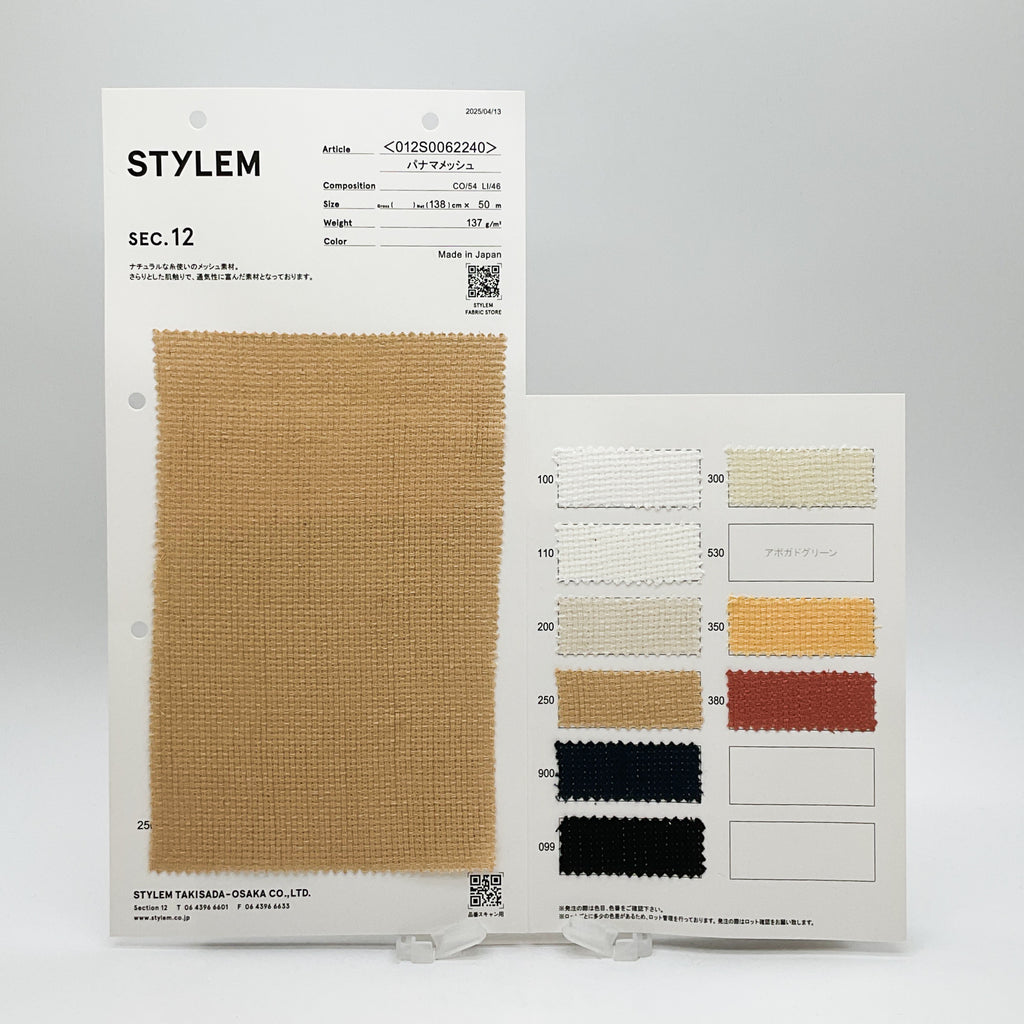 ナチュラルな糸使いのメッシュ素材。さらりとした肌触りで通気性にとんだ素材です。