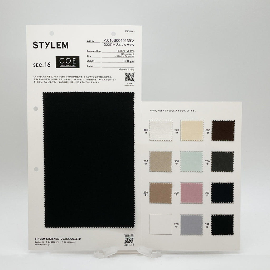 しっかりとした中肉厚で、フォルムを作りやすいのが特長です。ダブルサテンなので着心地が良く、光りすぎないほどよい光沢感により、さまざまなシーンで使いやすい素材です。カジュアルなコーディネートにも、ちょっとしたフォーマルな場面にもぴったりなダブルブルサテンです!