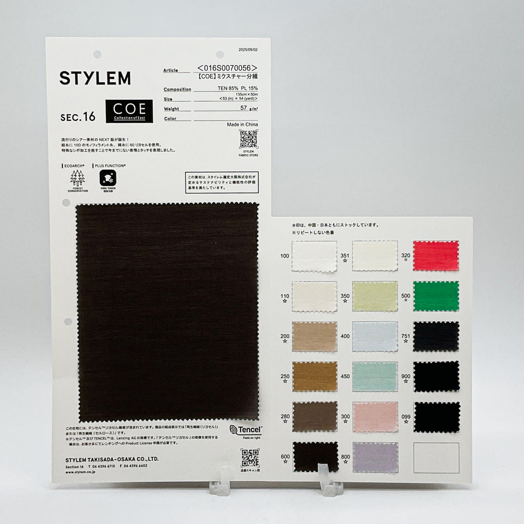 タテ糸に10デニールのモノフィラメント、ヨコ糸に60Sの環境に配慮したリヨセルを使用した表面感のある透け感素材です。