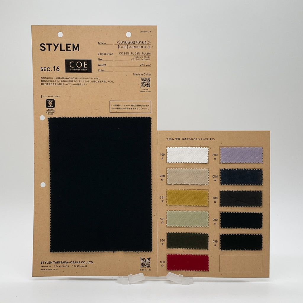 30番の綿とヨコ糸にポリエステルフィラメントを使用した綾組織のコーデュロイ素材です。