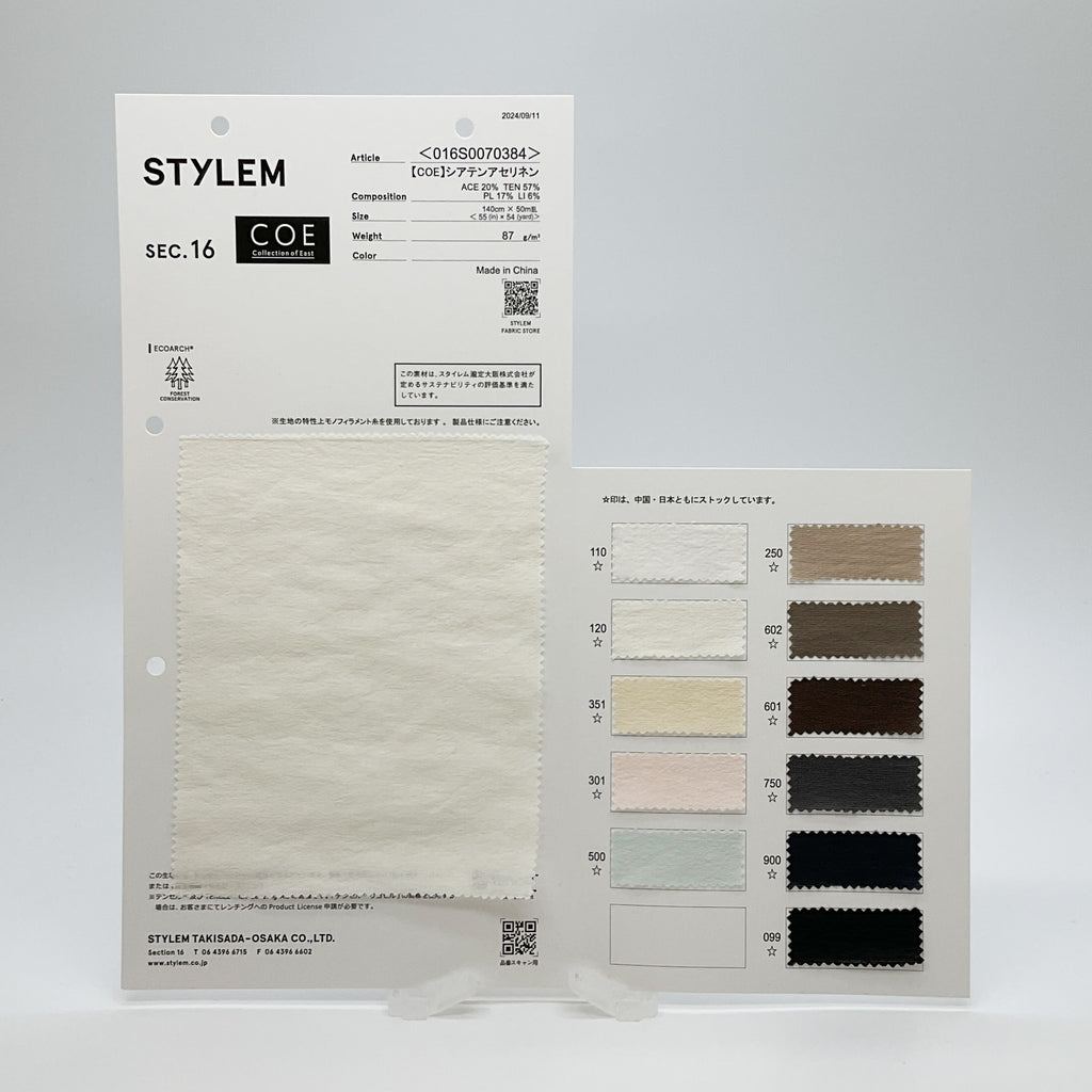 盛夏から晩夏に向けた、アセテートのドライ感と清涼感を最大限に引きだしたシアー素材です。