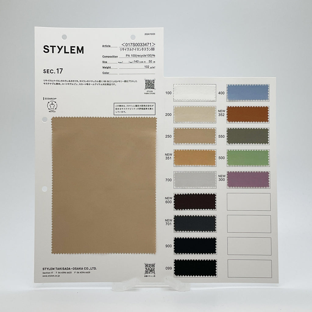 タテ・ヨコフィラメント糸のナイロン100%のタスラン加工で、ハリ感が特徴の商品です。シャツなどにおススメです。