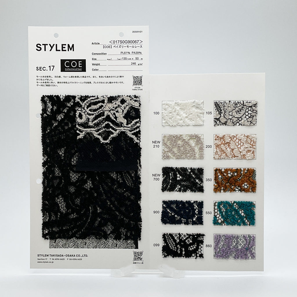 モール糸を使用することで、立体感をだしたペイズリー柄のモールレースです。