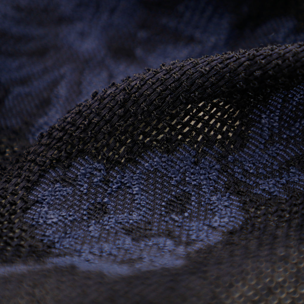 ベースをメッシュにしバックカットで柄の凹凸を表現したJQ。メッシュ箇所はリング糸を使用し強度を強くしました。