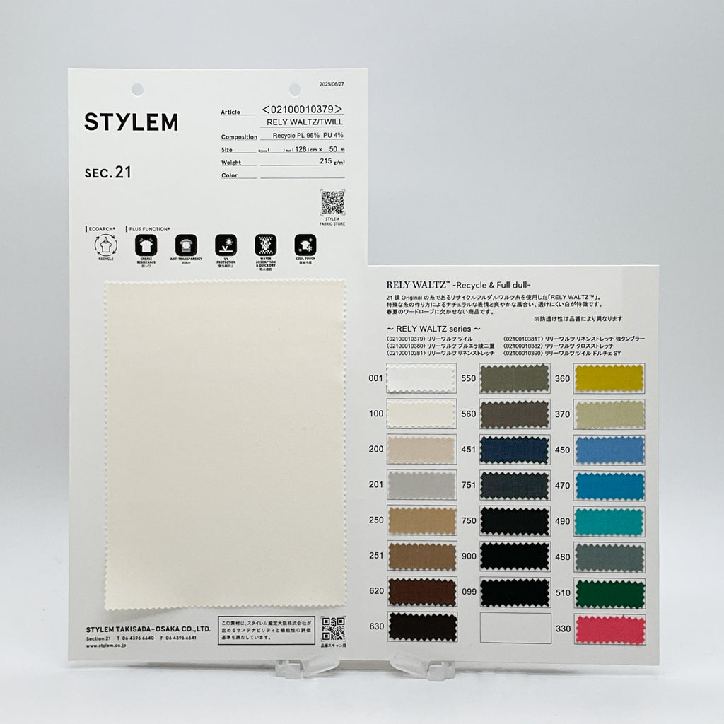フルダルのポリエステルを使用する事で、光沢を抑え、防透け機能のあるツイル素材です。シック・アンド・シンでドライなタッチと杢感を表現したリサイクル原料のポリエステル素材となります。