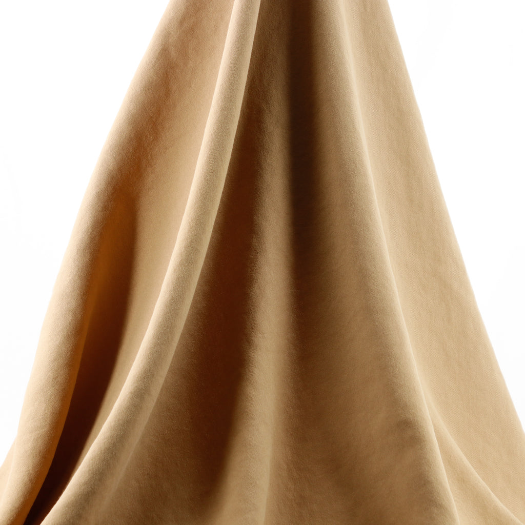 レーヨンに20デニールのポリエステル分繊糸をカバーリングした糸をタテ・ヨコに使用しています。この糸を使用することで、レーヨンの伸縮性を安定させたツイル素材です。