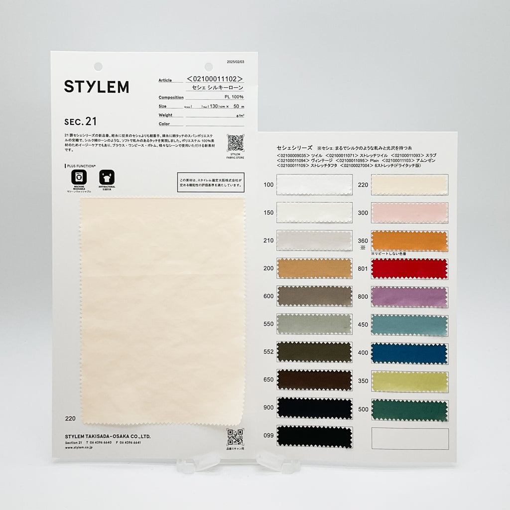 シルク調のポリエステル糸「セシェ」の細番手とスパンポリエステル糸を使用した交織ローンです。スパンタッチでよりナチュラルな仕上げにしています。※「Seche/セシェ」はユニチカ株式会社の登録商標です。