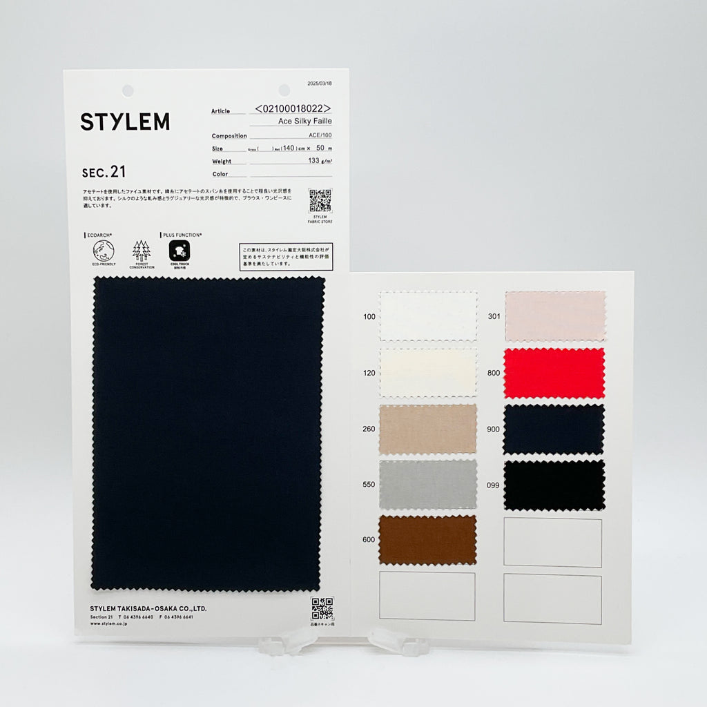 アセテートを使用したファイユ素材です。ヨコ糸にスパン糸を使用しています。 ブラウス、ワンピースに適しています。