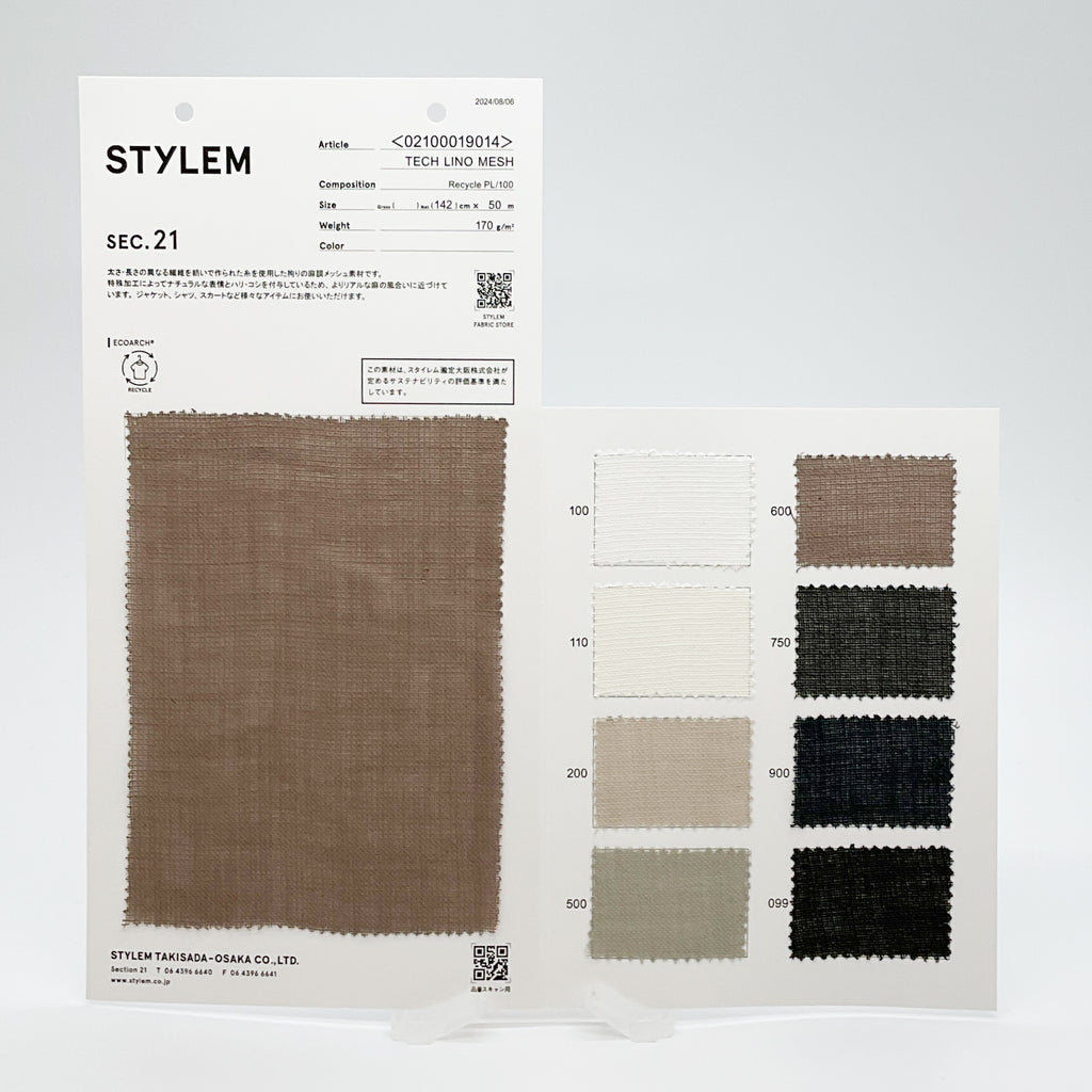 リサイクルポリエステルスパンでナチュラルなムラ感を追求しリネン調を表現した清涼感のあるメッシュ織物