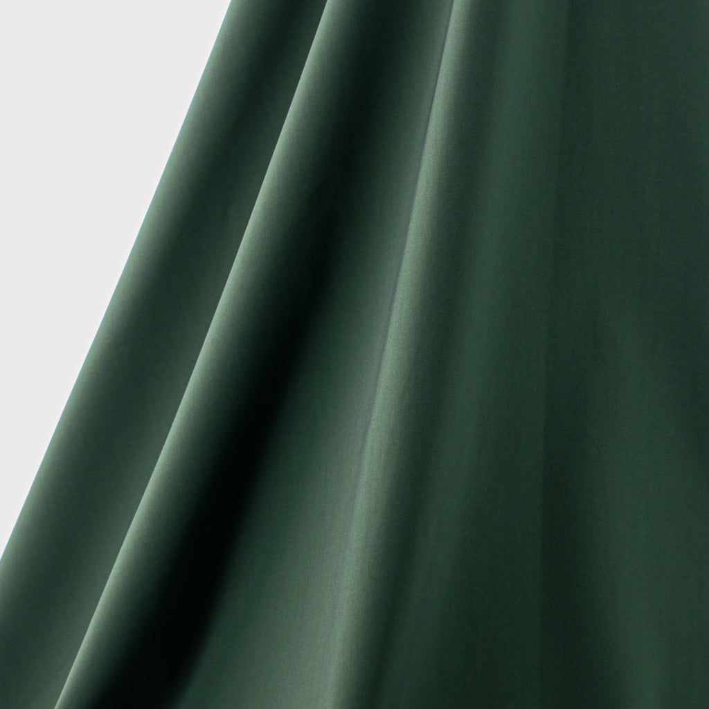 経糸に綿の50/-で、緯糸にナイロン×Puの平二重織です。適度な光沢感と張り感のある素材です。