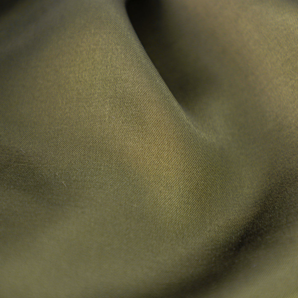 経フィラメント糸×横スパン糸の長短交織サテンです。フィラメントならでは艶とナチュラルな風合いが共存しています。 さらに防縮加工を施し手洗い可能です。