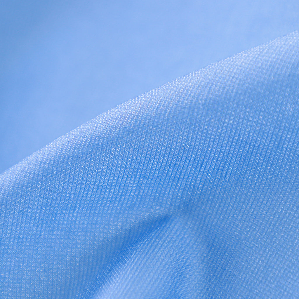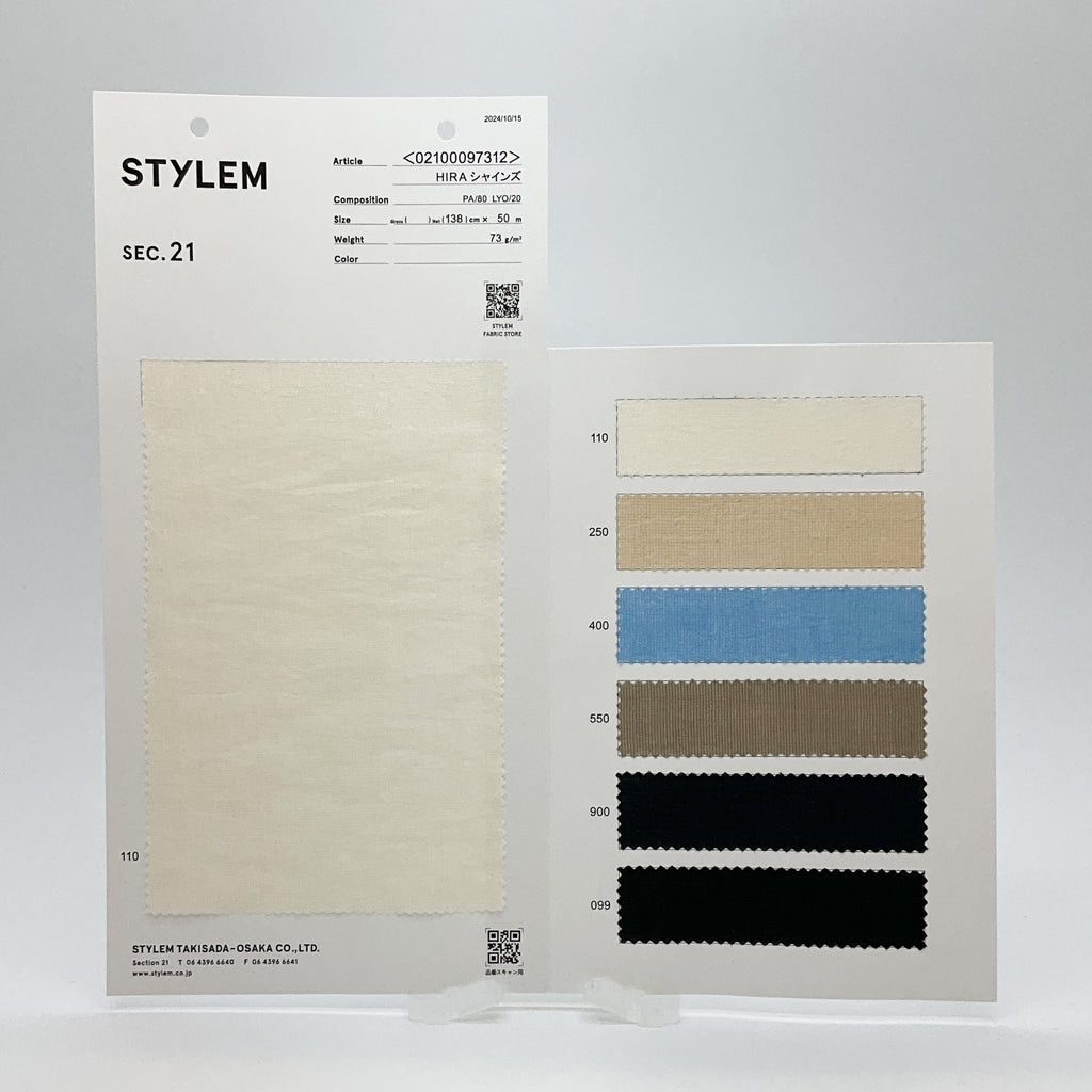 カールマイヤー風の平織で、生地の表情感がありながらも透け感も併せ持つ素材です。化繊のソフトな風合いとナイロンの清涼感もあります。