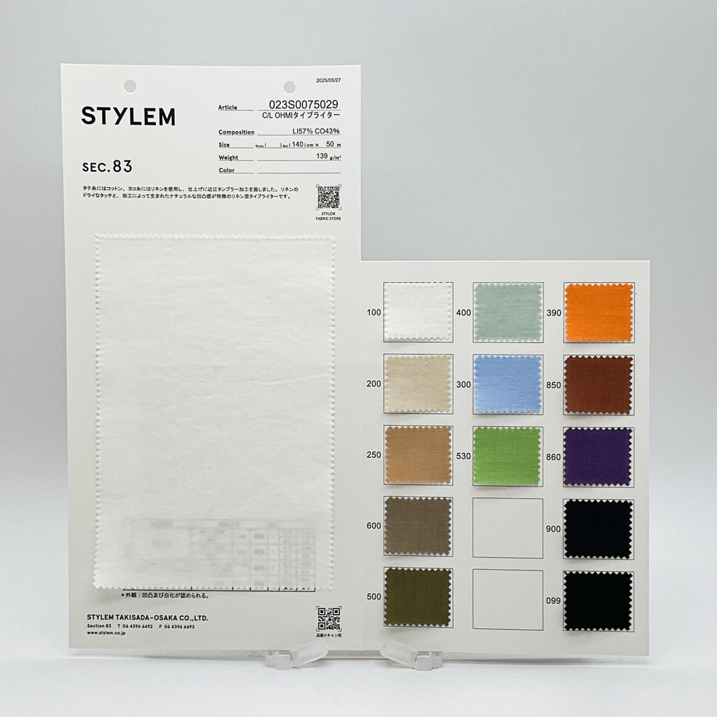 タテ糸にはコットン、ヨコ糸にはリネンを使用し、仕上げに近江タンブラー加工を施しました。 リネンのドライなタッチと、加工によって生まれたナチュラルな凹凸感が特徴のリネン混タイプライターです。