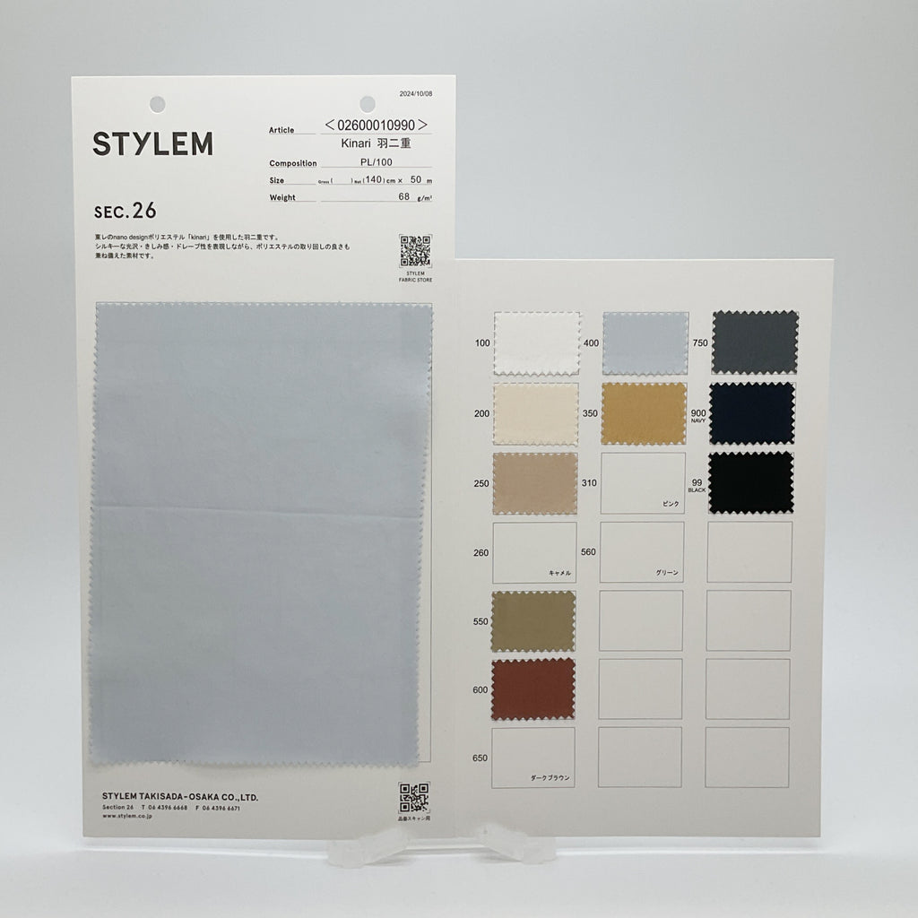 ナノデザインである超ハイカウントポリエステル「kinari」を使用した羽二重。シルクのようなキシミ感・繊細な光沢感がポイントです。