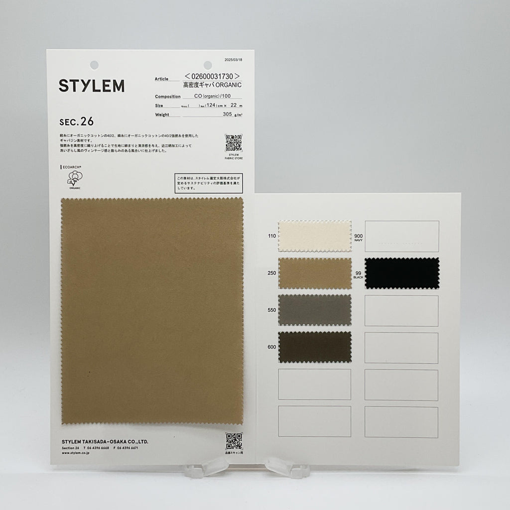 タテはオーガニックの40/2糸を使用、ヨコはオーガニックの40/2強撚糸を使ったギャバジン素材です。 高密度に織り上げることで耐久性は高く、高級感と程よい光沢感がある生地となっています。 そこに近江晒加工を施すことで適度なハリ感と、綿ならではのしなやかさが生まれています。
