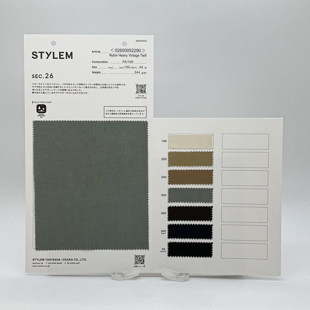 ヘビーウエイトなナイロンに、バゼロ加工という特殊なナイロン改質加工を施したツイル素材です。 タテ方向とヨコ方向に圧縮することでコンパクトなハリ感を生み出し、立体感のあるシボを持たせることでヴィンテージな表情に仕上げました。 撥水加工も施しているので、アウターなどにもおすすめです。