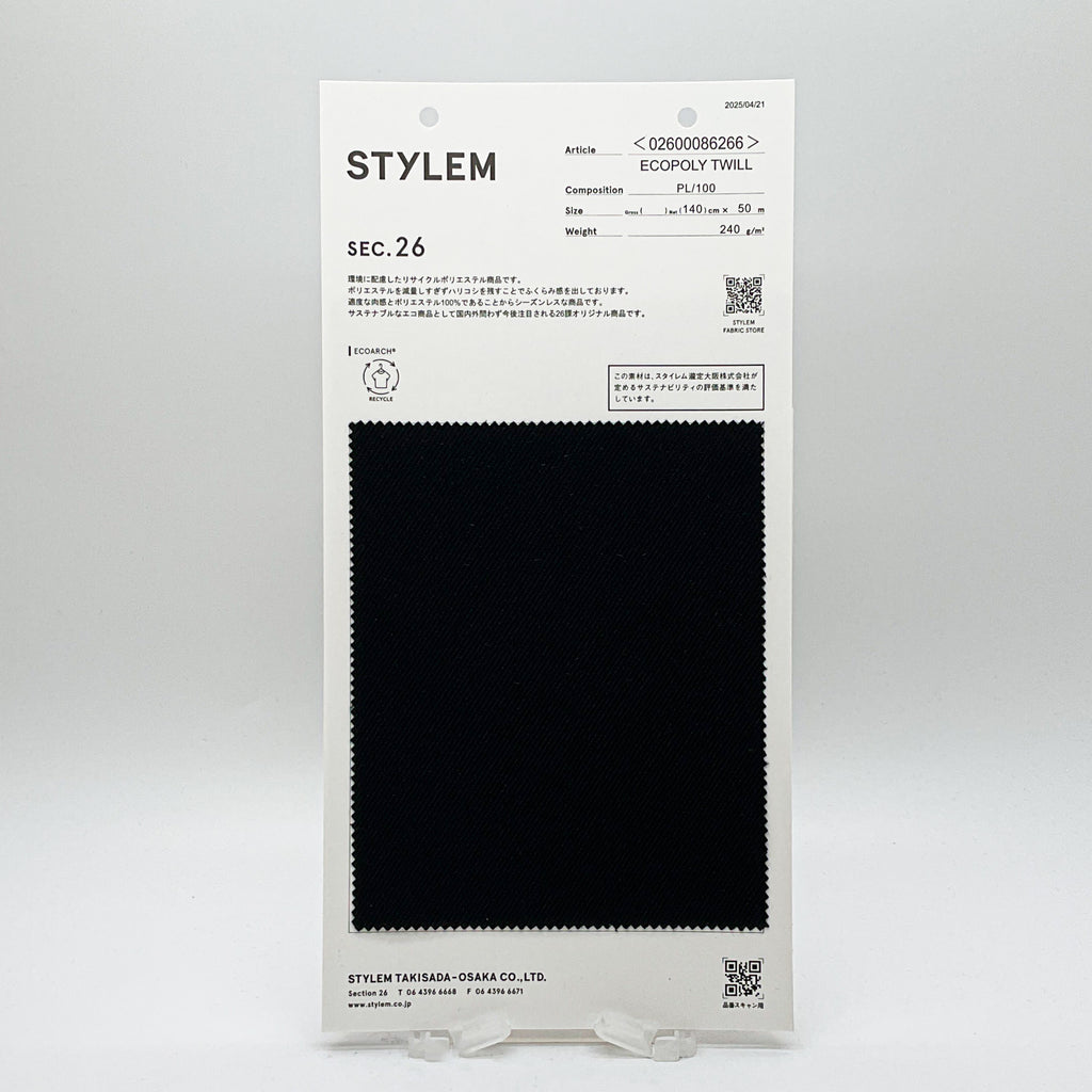 リサイクルポリエステルを使用したツイル素材です。ハリ感とふくらみ感があるので、仕立て映えのする素材です。