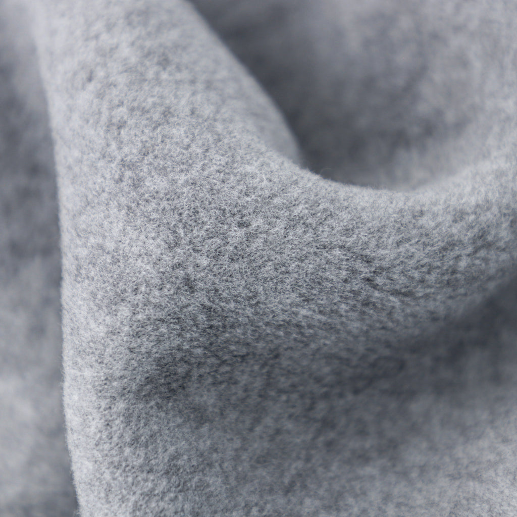 ハイマルチのリサイクルポリエステルを使用したフリース素材で、複数回施した深く柔らかい起毛が特徴です。