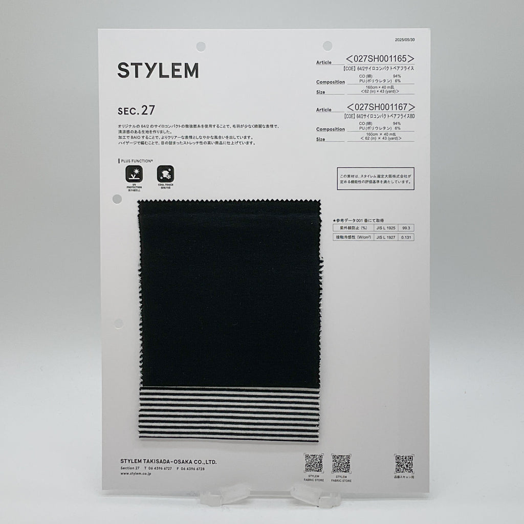 サイロコンパクトで紡績し少し強めに撚糸を入れた糸を使用することで、清涼感のある風合いと、クリアーできれいな表情の商品になっております。またバイオ加工することで、よりクリアーな表情としなやかな風合いの商品に仕上げております。