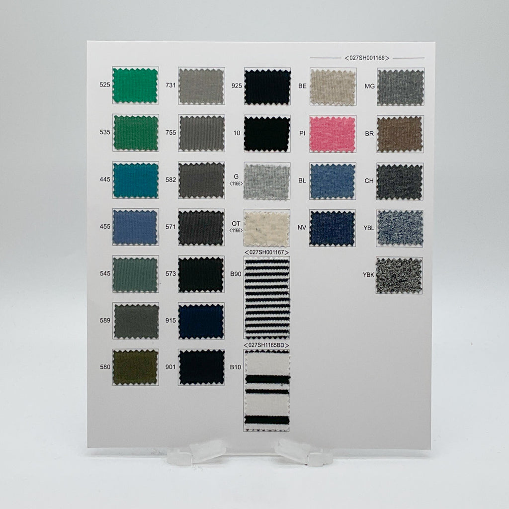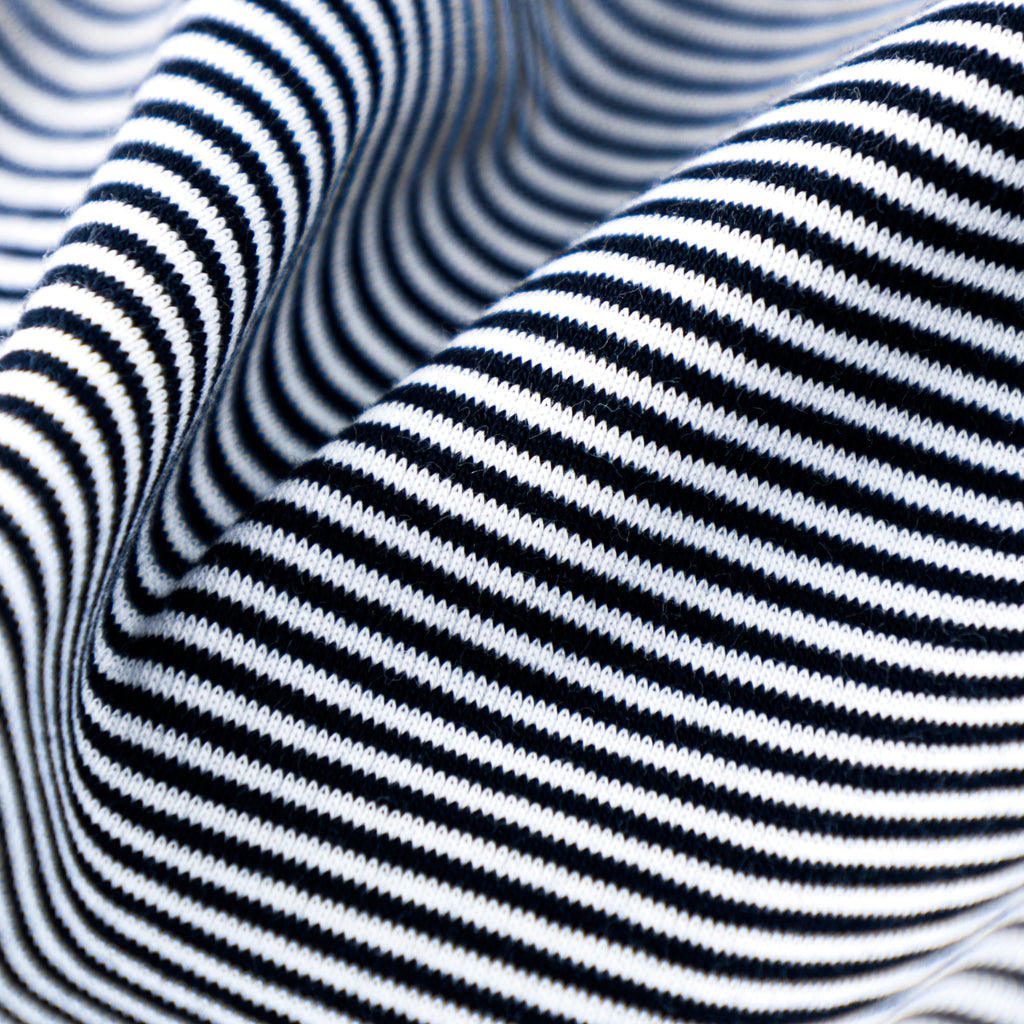 サイロコンパクトで紡績し少し強めに撚糸を入れた糸を使用することで、清涼感のある風合いと、クリアーできれいな表情のボーダーになっております。またバイオ加工することで、よりクリアーな表情としなやかな風合いの商品に仕上げております。