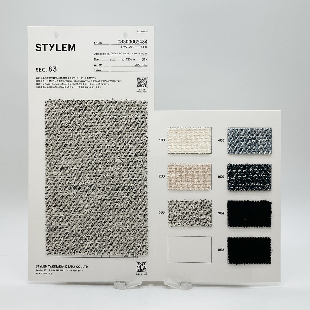 綿、ポリエステル、アクリルのスラブ糸を使用しており、幅広いシチュエーションに対応した無地としても使えるツイードに仕上げています。 ※組織違いの〈0830065664A〉ミックスツィード平織もリスクしています。