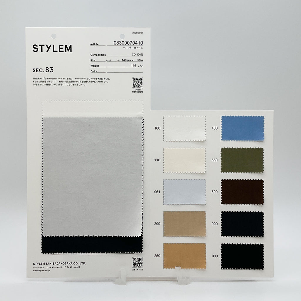 高密度タイプライター素材に特殊加工を施し、ペーパーライクなタッチを実現しました。ドライで反発感がありつつ、着用すると肌馴染みの良さを感じる心地よい素材です。