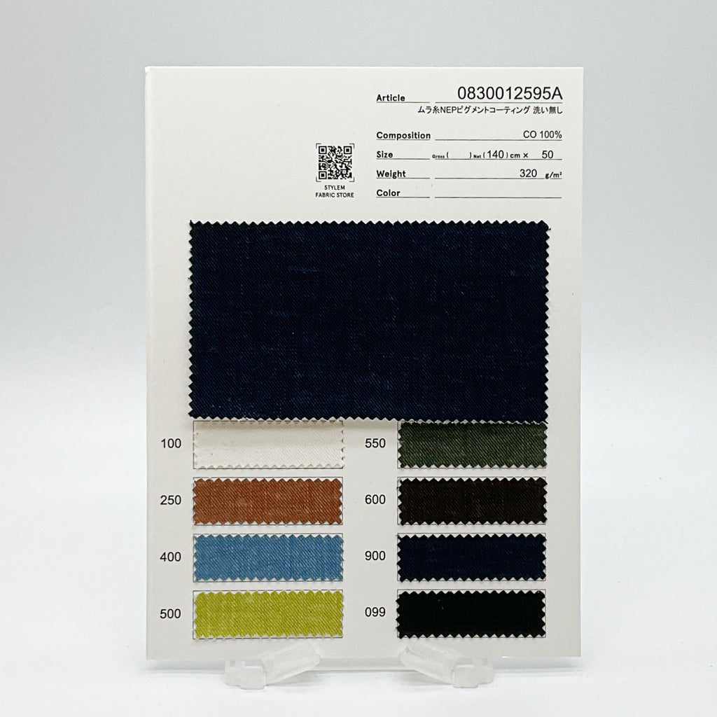 ムラ糸ネップ生成りの素材に顔料コーティングしました。製品染めしたようなナチュラルな色合いを生地で表現しています。 素材特性上、ロットごとによる色差、洗い加工によって生じるアタリやムラ等が発生することがあります。