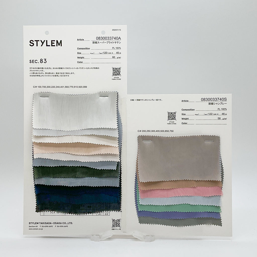 <33740A>のシャンブレー版。 経糸の分繊の豊かな光沢と、緯糸の割繊マイクロファイバーのパウダリーなタッチが特徴です。