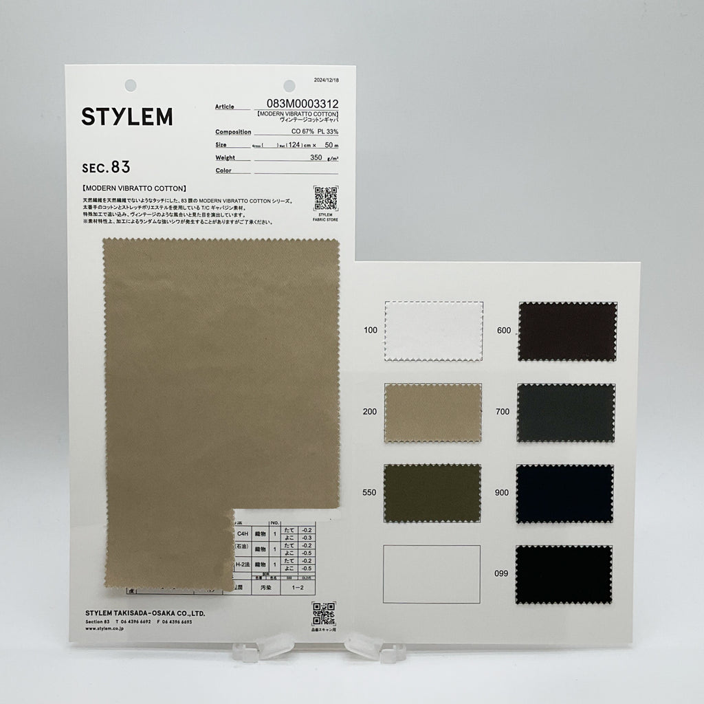 天然繊維を天然繊維でないようなタッチにした、83課のMODERN VIBRATTO COTTONシリーズ。 太番手のコットンとストレッチポリエステルを使用しているT/Cギャバジン素材。 特殊加工で追い込み、ヴィンテージのような風合いと見た目を演出しています。