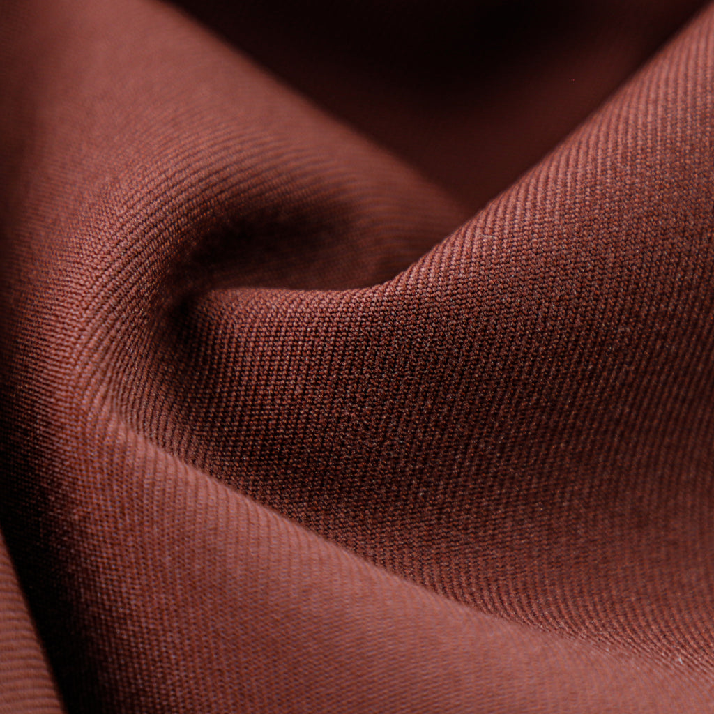 元々ユニフォーム用途の高密度リサイクルポリエステルのギャバ。 糸段階で適度に減量する事で膨らみを出し、ファッション用途に落とし込みました。 梳毛のような美しい見た目とポリエステル100%であることからシーズンレスで使用できる素材です。