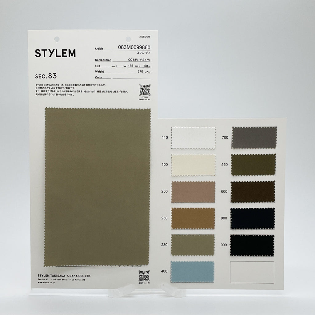 タテ糸にセミダルのビスコース、ヨコ糸に太番手の綿を限界まで打ち込み、83課完全オリジナルのチノを完成させました。