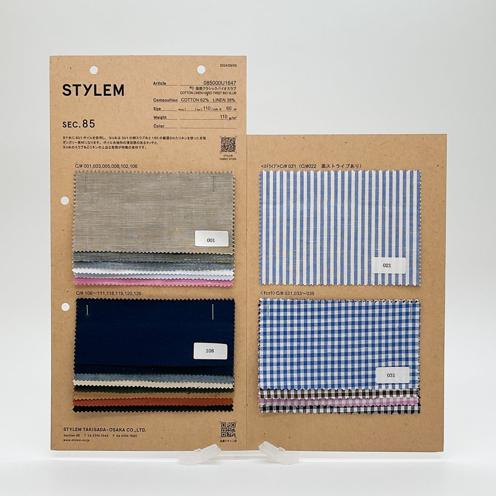 タテ糸に綿80/-ボイル、ヨコ糸に30/-綿スラブと1/60リネンを使用した先染め素材になります。