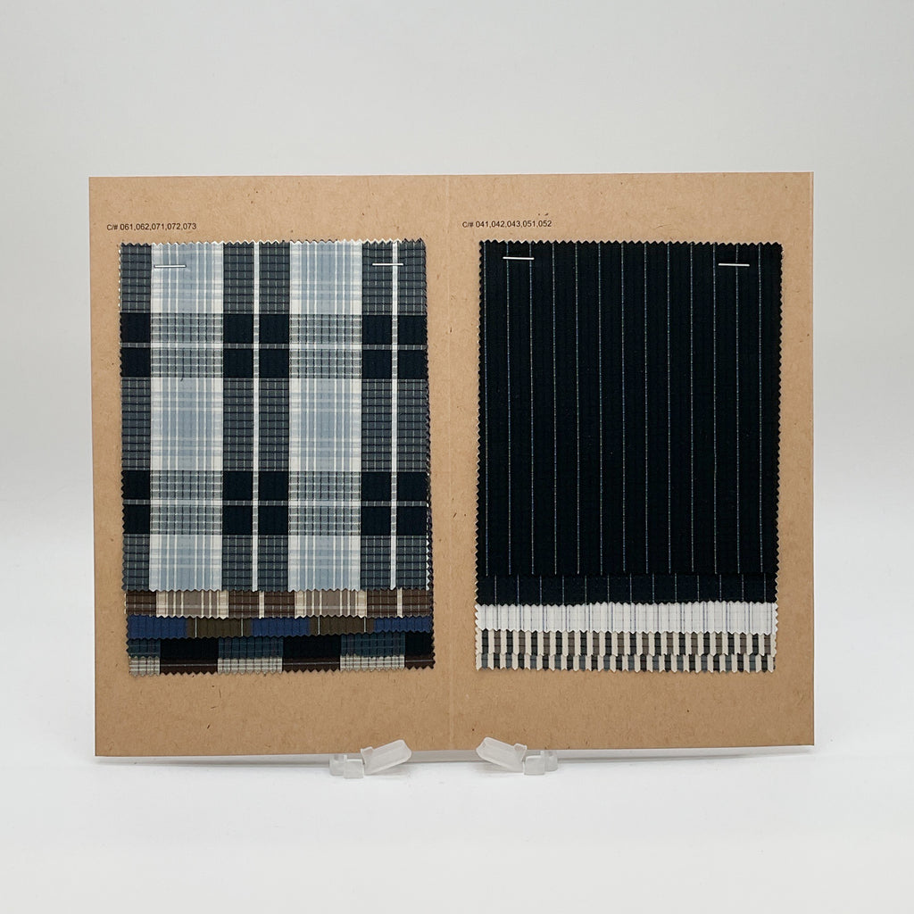 特殊メッシュ組織の為、通気性・軽量感のある快適機能素材です。先染めによる繊細な柄と加工によるハリ感が特徴です。